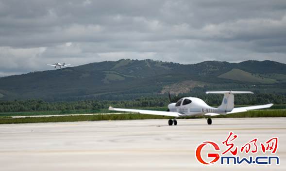 內蒙古扎蘭屯成吉思汗機場,飛行學員們正在駕駛訓練機進行飛行訓練。光明網(wǎng)記者 潘迪攝