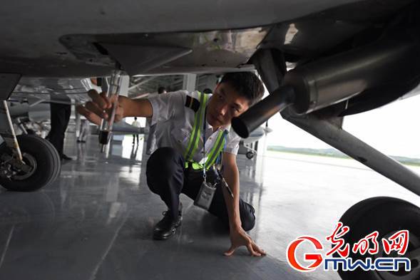 訓練機起飛前,飛行學員們正在檢查機身狀況。光明網(wǎng)記者 潘迪攝