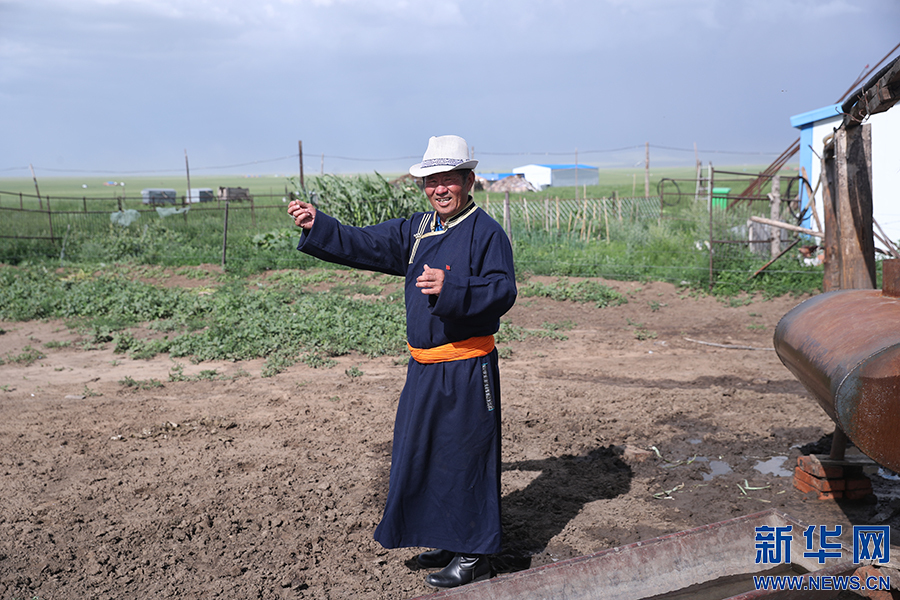 其日麥拉圖介紹自家草場(chǎng)。新華網(wǎng)記者 焦鵬攝