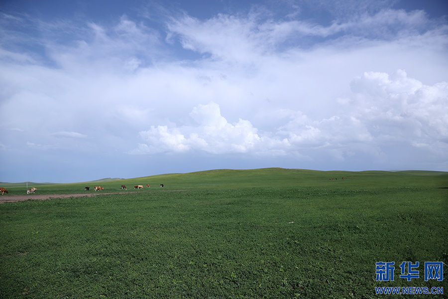 8月的呼倫貝爾草原一碧萬(wàn)頃。新華網(wǎng)記者 焦鵬攝