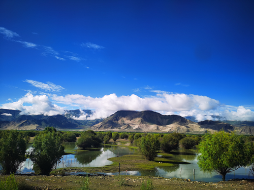 這里的日頭很毒,曬黑了面龐,曬熟了青稞。這里的風(fēng)總是呼嘯,吹裂了皮膚,吹壯了牦牛。有時(shí)候一片云飄來,原本的晴天便會(huì)頃刻間落下雨來,澆綠了山林,澆皺了湖泊。