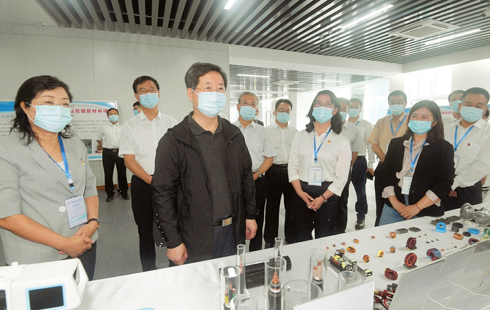 八月十七日,省委書記樓陽生在呂梁經(jīng)濟(jì)技術(shù)開發(fā)區(qū)數(shù)字經(jīng)濟(jì)產(chǎn)業(yè)園察看入駐企業(yè)產(chǎn)品展示。本報(bào)記者史曉波攝
