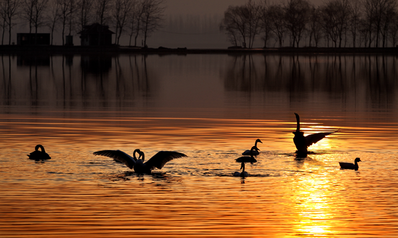 每年的10月下旬,經(jīng)過長途遷飛的天鵝成群結(jié)隊(duì)來到圣天湖越冬,數(shù)量最多時(shí)達(dá)2萬只。資料圖