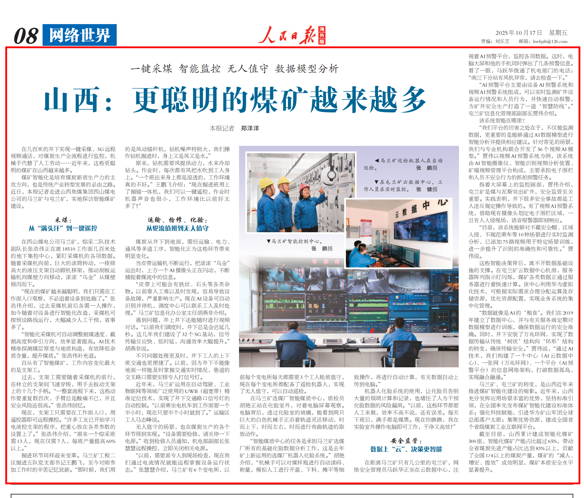 煤礦智能化是培育煤炭新質生產(chǎn)力的主攻方向,也是傳統(tǒng)產(chǎn)業(yè)轉型發(fā)展的必由之路。近日,本報記者走進山西焦煤集團西山煤電公司的馬蘭礦與屯蘭礦,實地探訪智能煤礦建設。