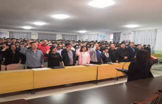 最后在白曉燕副校長(zhǎng)的帶領(lǐng)下,高三全體老師、學(xué)生緊握右拳,重溫高考誓言:“腳踏實(shí)地刻苦專研;揮灑汗水斗志昂揚(yáng);決戰(zhàn)高考再創(chuàng)輝煌,必勝、必勝、必勝!”