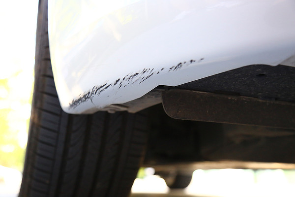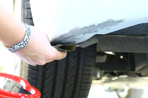 我們找來一輛前保險杠底部被蹭得面目全非的可憐車,在選擇補漆工具時要根據劃痕的情況進行合理選擇,不過就算是最嚴重的大面積傷及底漆的修補套裝,一般也不超過百元。