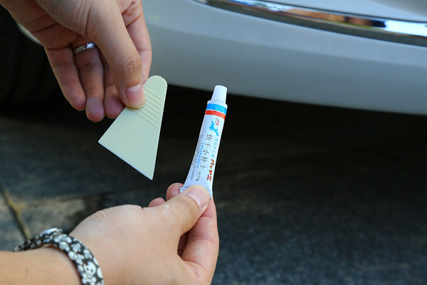 補土的配件包括砂紙和刮板。首先將補土擠在刮板上,然后再劃痕處進行刮涂,先是進行薄薄的一層,讓后要晾干3-5分鐘,之后再刮涂一層,再晾干,重復幾次,直到劃痕凹陷處被填平。等10-15分鐘左右補土完全干燥,之后用800的砂紙沾一些水將補土處進行再次打磨平整。