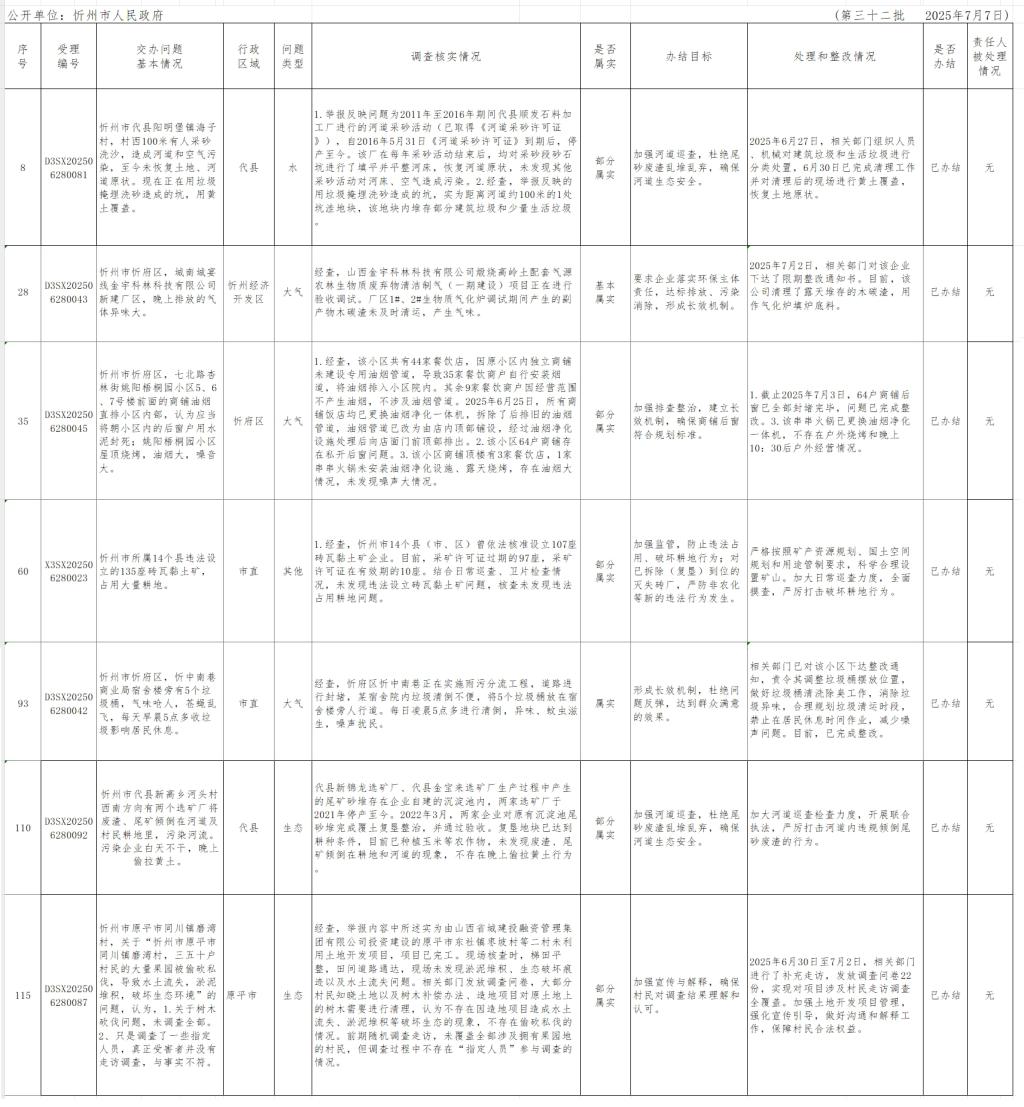 中央生態(tài)環(huán)境保護(hù)督察組群眾信訪舉報轉(zhuǎn)辦和邊督邊改公開情況一覽表(第三十二批)