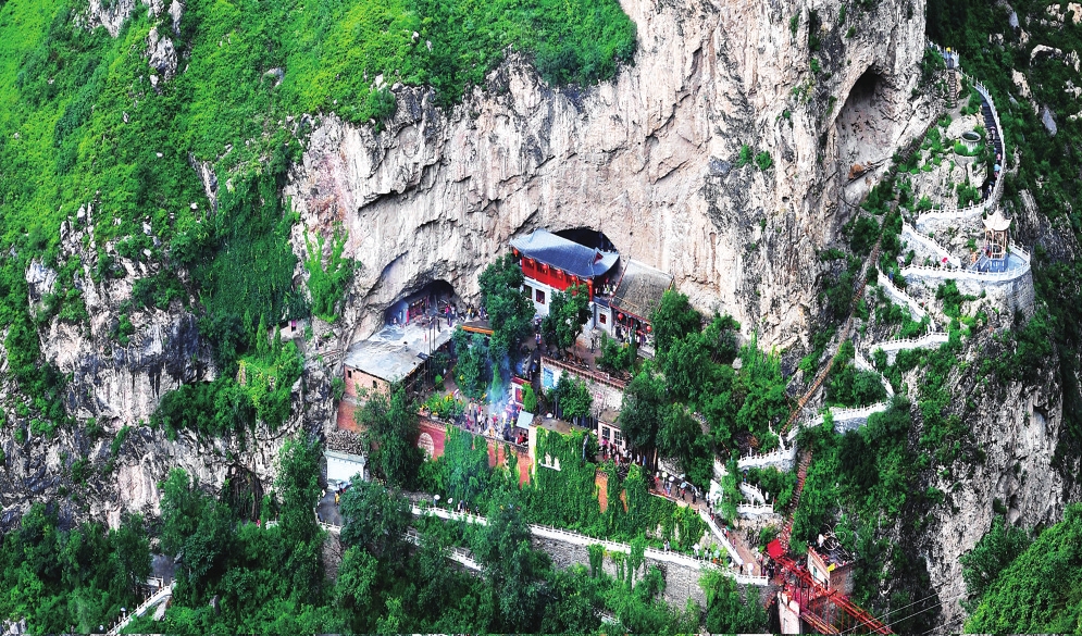 系舟山有許多溶洞,有白龍洞、黑龍洞等,其中禹王洞是最大的一座天然溶洞,號稱華北第一溶洞,洞內(nèi)九曲回環(huán),鐘乳石如群獅迎賓、金龜出洞,洞外系舟山林海如濤。